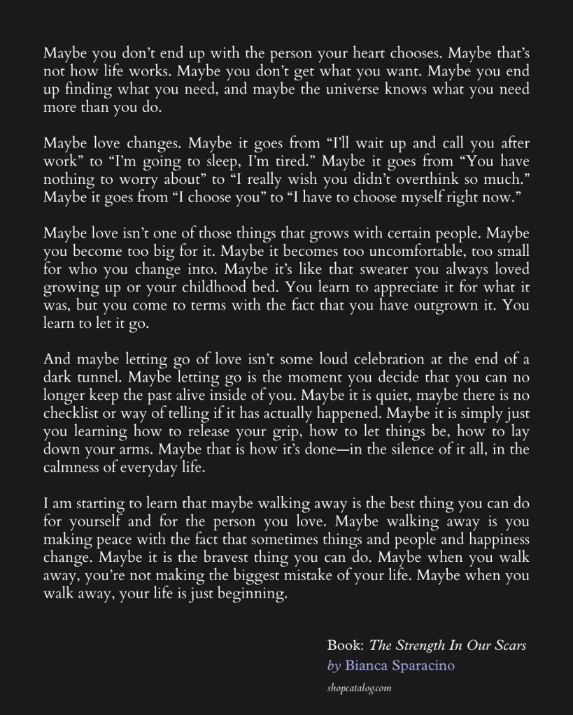 One day, you will understand that happiness was always about learning how to live with yourself, that your happiness was never in the hands of others. It was always about you. It was always about you.